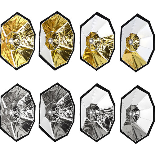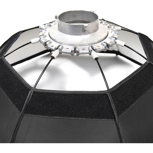 The Modmaster Multi-Fabric Octagonal Softbox from Savage is a convenient light shaper for image makers who want a soft quality of light with contrast and color tint options. The softbox has all of the advantages of the octagonal form factor – a wrap-around light quality, large surface area for adequate coverage, and natural-looking catchlights in the eyes of your subject.